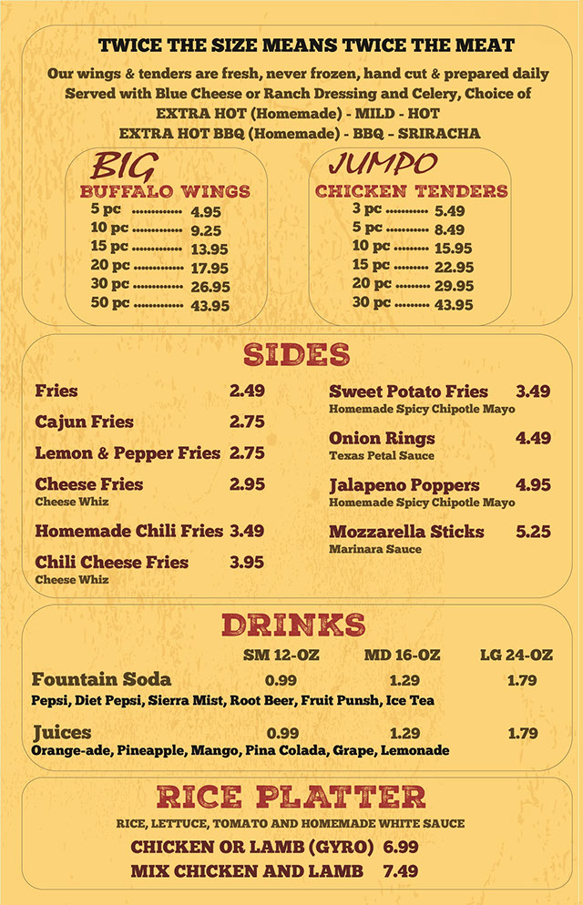 We use All-Natural %100 beef and chicken born and raised in the good of U.S. A. No preservatives. No hormones. No antibiotics. No compromises. Our meat is never frozen.